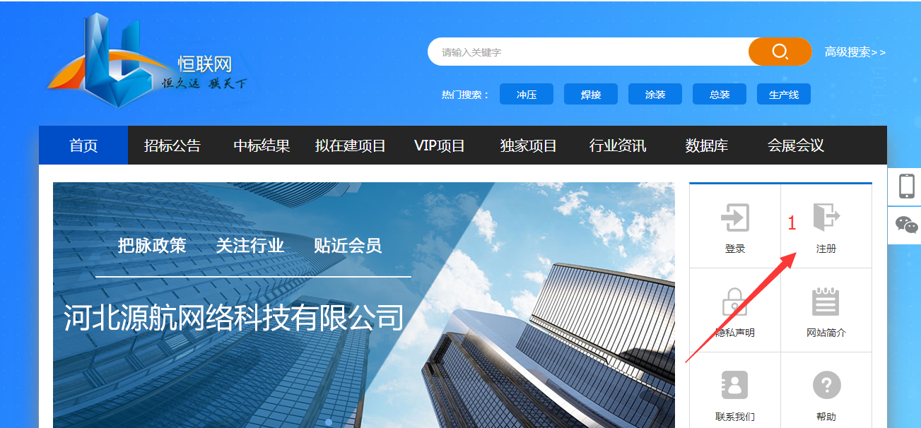 1、進(jìn)入恒聯(lián)網(wǎng)后第一步點(diǎn)擊注冊(cè)